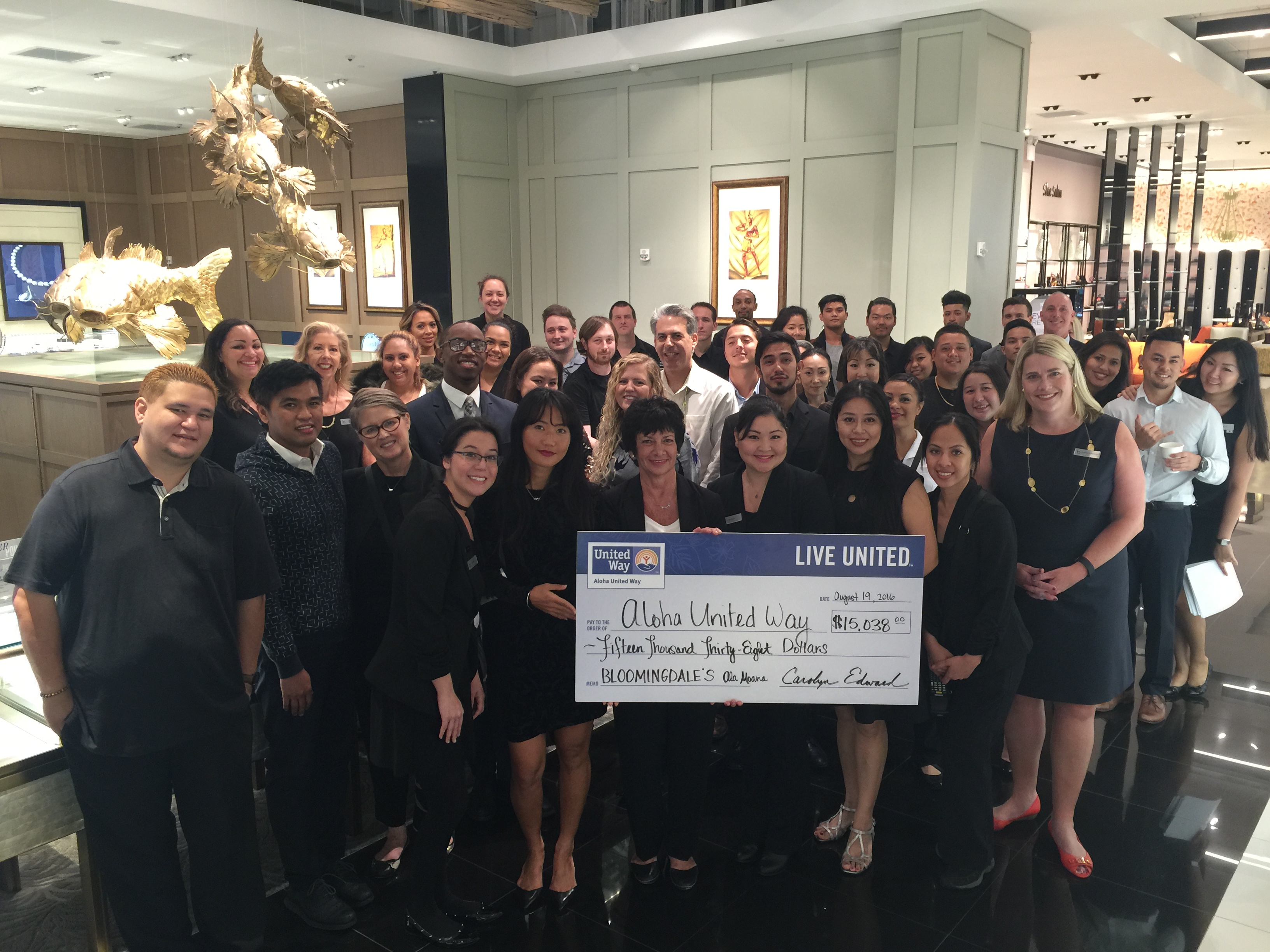 Sep. 8, 2016A BIG Mahalo to Bloomingdale's for their first official workplace campaign with Aloha United Way. Their employees 'joined the movement' and raised over $15,000 for our community. #jointhemovement #alohaunitedway
