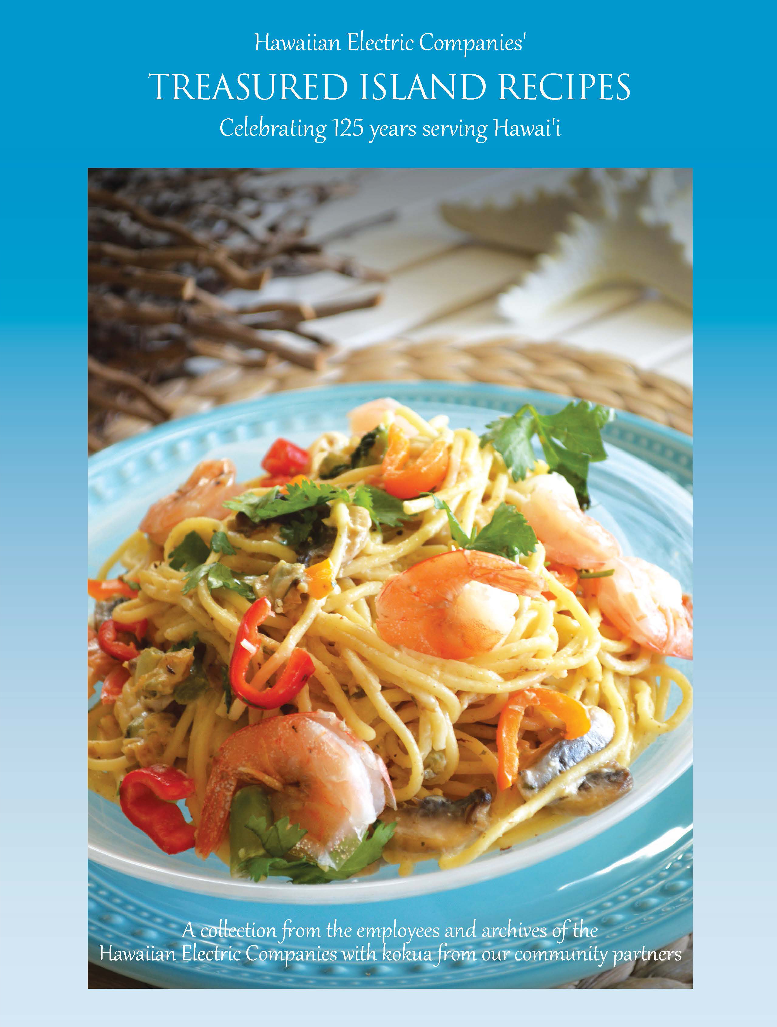 Hawaiian Electric has published “Treasured Island Recipes: Celebrating 125 years serving Hawaiʻi,” a special anniversary edition cookbook compiled by employees as a fundraiser for Aloha United Way. The 288-page, soft cover, spiral bound collection is $14 and features more than 200 recipes from employees and their families, Hawaiian Electric recipe archives, and many of the company’s community and nonprofit partner organizations. Award-winning recipes from culinary students, a few local celebrity chefs, and a section on energy saving ideas for the home cook also are included.