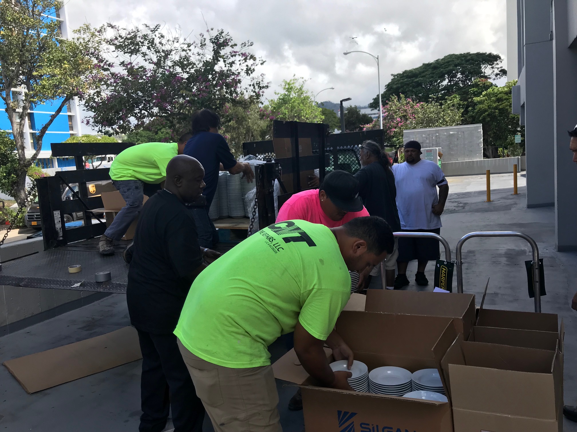 Today we picked up 2,100 donated recycled bags from Walmart that we will be using to pack the United Airlines items that were delivered yesterday. All the Walmart stores on Oahu generously donated bags so that we could have enough for our packing day.