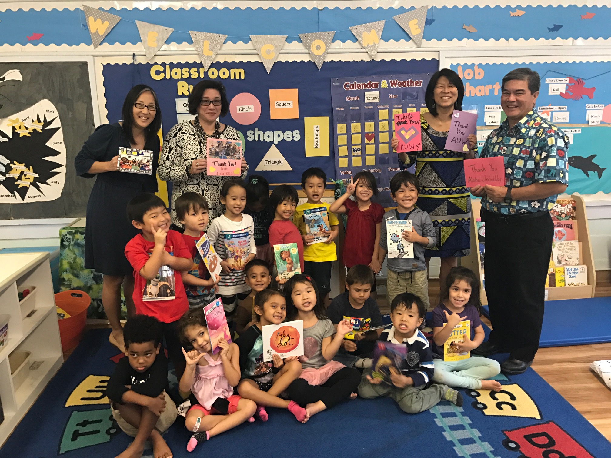 Aloha United Way had an opportunity to visit Waikiki Community Center this afternoon with our friends from Barnes and Noble. The Center was a recipient of books from our Holiday Book Drive. Today, we were able to join a class of 4-year olds, receive thank you cards from them and capture their excitement, enthusiasm and appreciation on camera. What fun!